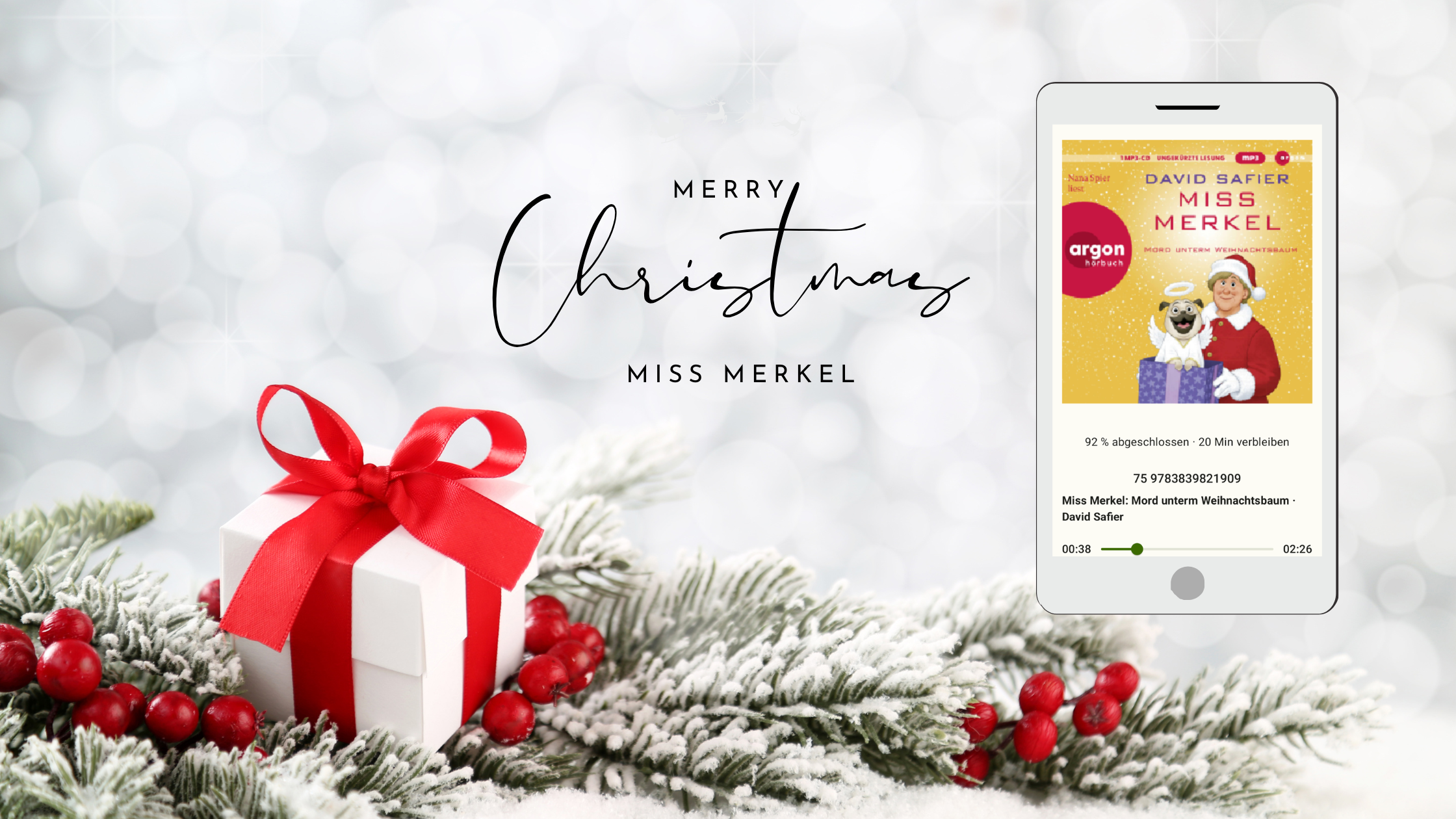 Es ist zwar noch nicht Weihnachten, aber trotzdem hat mich in den letzten Tagen das Hörbuch Miss Merkel: Mord unterm Weihnachtsbaum von David Safier begleitet. Ich mag die Sprecherin sehr. Nana Spier zu lauschen ist jedes Mal ein Erlebnis. Sie schafft es, jeder Figur eine eigene Stimme zu geben und dabei diesen feinen, verschmitzten Humor einzufangen, der typisch für Safiers Geschichten ist.