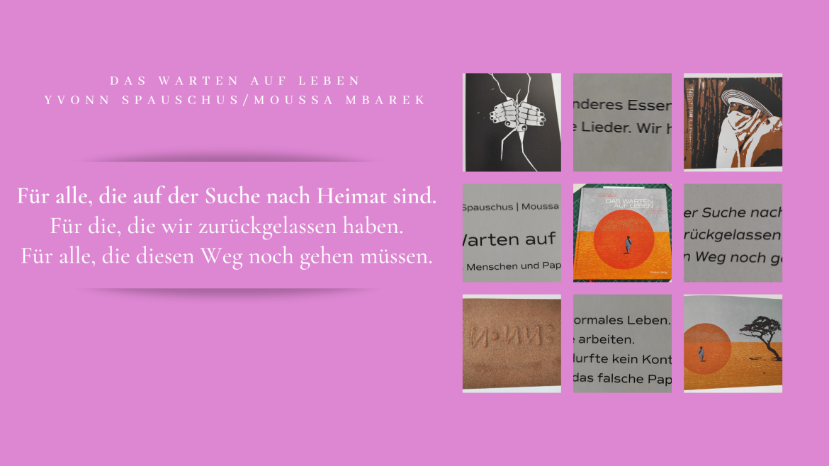 | Autor: Moussa Mbarek/Yvonn Spauschus Titel: Das Warten auf Leben Erschienen: 20. Juni 2022 | Herausgeber: Mirabilis Verlag Seiten: 80 ISBN: 978-3-947857173 |